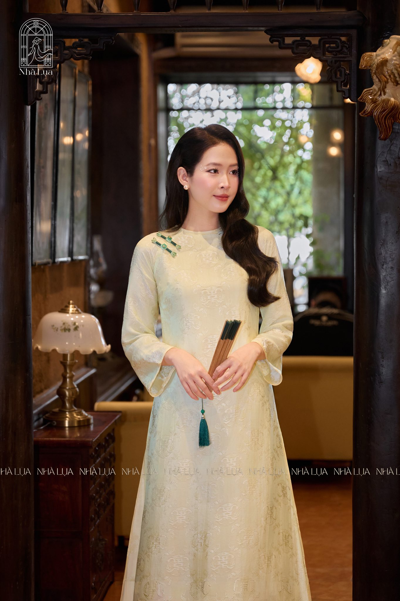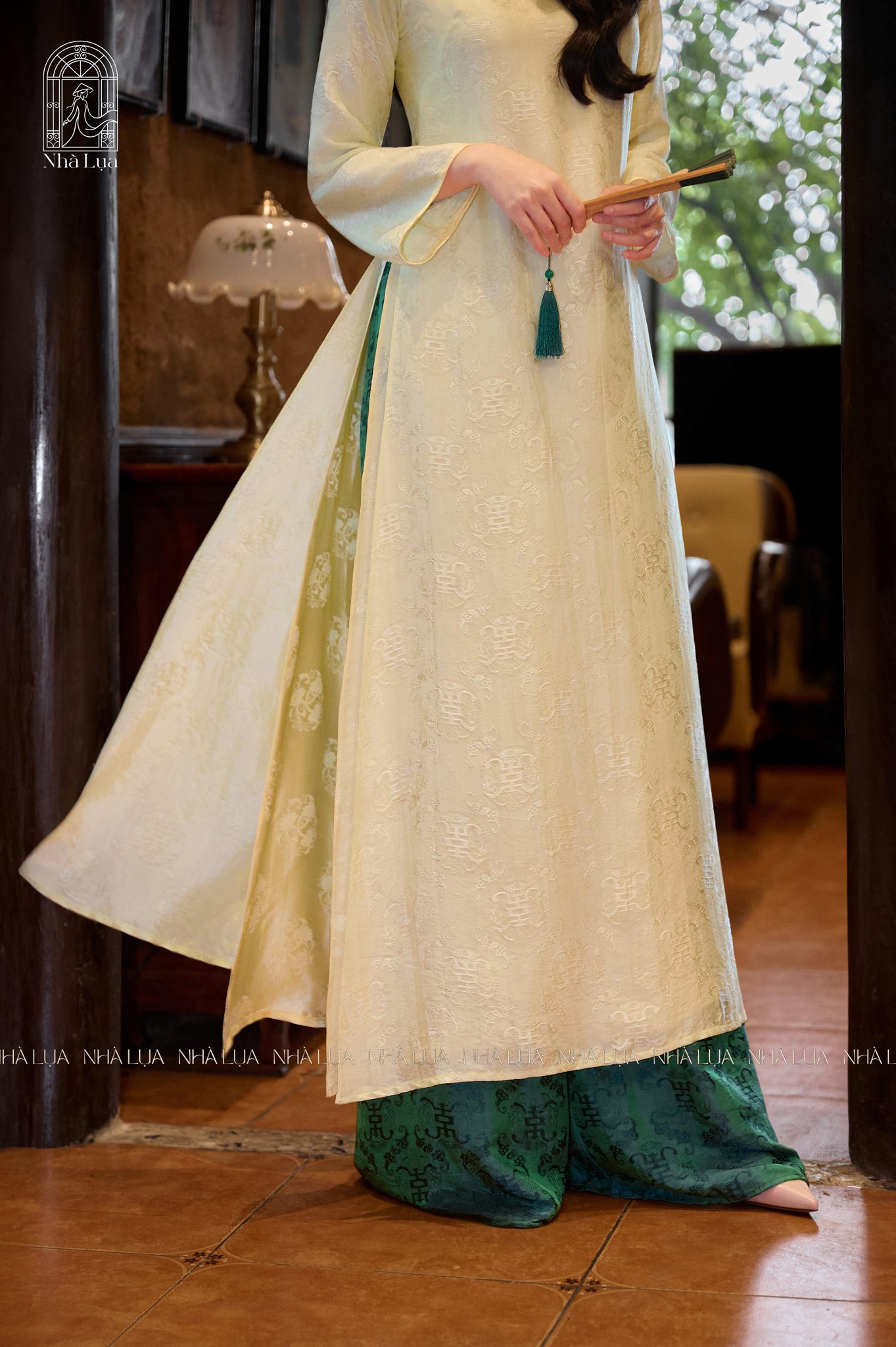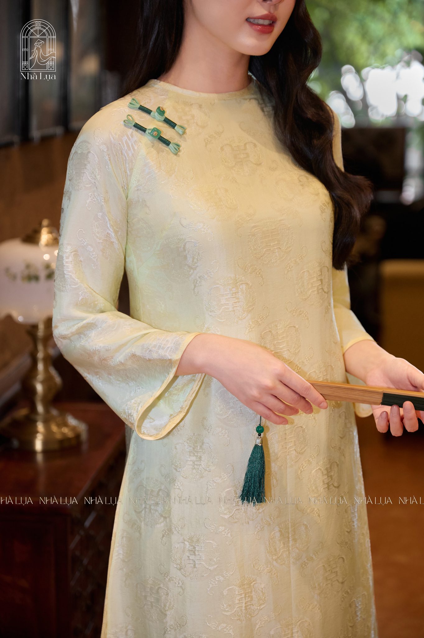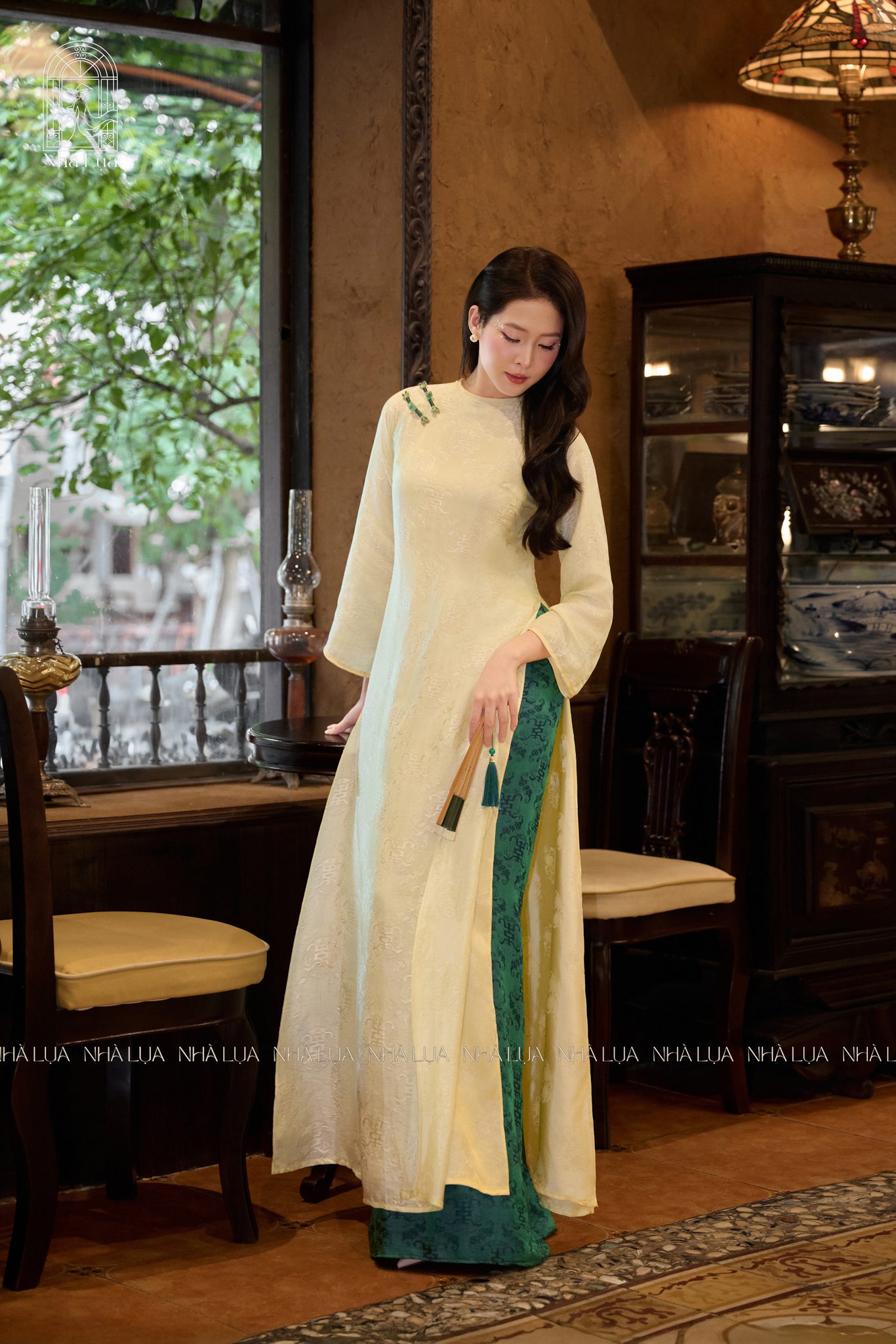 Áo Dài Tâm Nhã Lụa Tơ Tằm Màu Vàng Nhạt