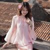 Dáng xoè bay bổng cùng tay loe thướt tha giúp nàng trở nên duyên dáng và cuốn hút ở mọi góc nhìn. Chi tiết kết hoa tinh tế và hàng nút ngọc phía trước là điểm nhấn tôn thêm nét nữ tính, mềm mại.