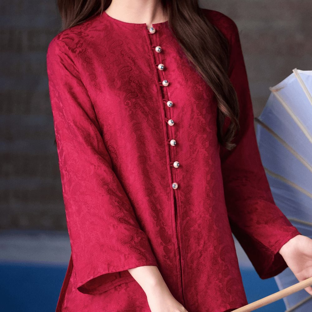 Pháp Phục Đan Giao nổi bật với phom dáng rộng thoải mái và hàng nút bọc thủ công tinh tế.