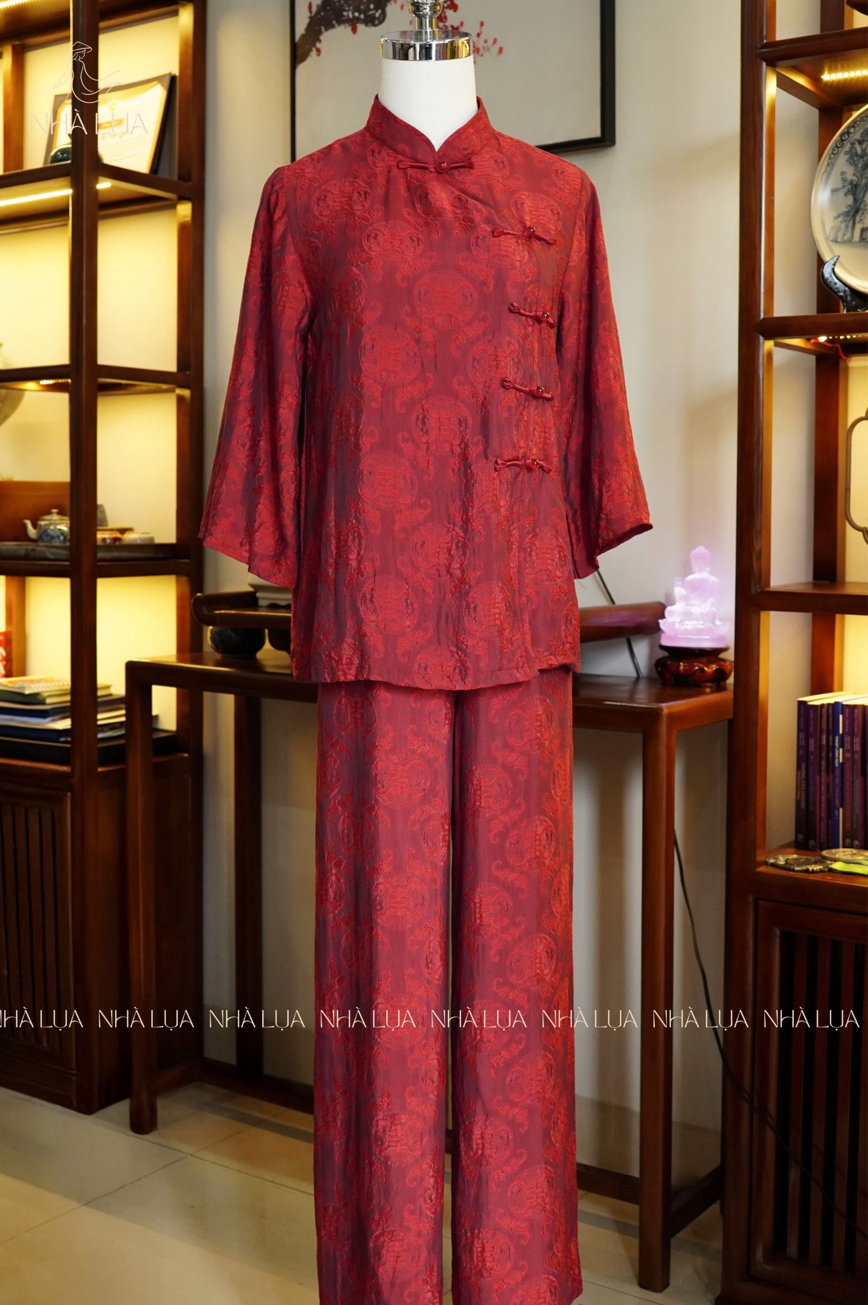 Điểm nhấn của pháp phục Hồng Trầm vừa trang nhã vừa hiện đại. Thiết kế cổ tròn kín đáo, tay rộng thoải mái và hàng nút bọc thủ công tạo nên tổng thể hài hòa, phù hợp cho các nghi lễ, sinh hoạt đạo và không gian trang nghiêm. Phom dáng rộng rãi giúp người mặc dễ dàng di chuyển mà vẫn giữ được sự chỉnh chu của pháp phục truyền thống. Được dệt từ sợi tơ tự nhiên, pháp phục lụa tơ tằm Hồng Trầm mang đến cảm giác mềm mịn, mát rượi và nhẹ bẫng khi chạm vào da. Chất liệu có độ rũ nhẹ, thoáng khí và hoàn toàn lành tính, phù hợp với cả làn da nhạy cảm. Bề mặt lụa bắt sáng tinh tế, tạo cảm giác thanh thoát và thoải mái trong suốt thời gian mặc. Đây là lựa chọn pháp phục cao cấp lý tưởng cho các buổi lễ chùa, sinh hoạt Phật giáo, tụng kinh hoặc các sự kiện văn hóa truyền thống. Mẫu phục dễ dàng phối cùng chuỗi tràng hạt, khăn choàng nhẹ hoặc túi vải mộc, tạo nên phong thái trang nghiêm và thanh lịch chuẩn Nhà Lụa. Sắc hồng đất giúp người mặc toát lên vẻ ấm áp, tinh tế và nổi bật một cách nhẹ nhàng.Lụa tơ tằm Nha Xá thượng hạng, mềm mại và thoáng nhẹ