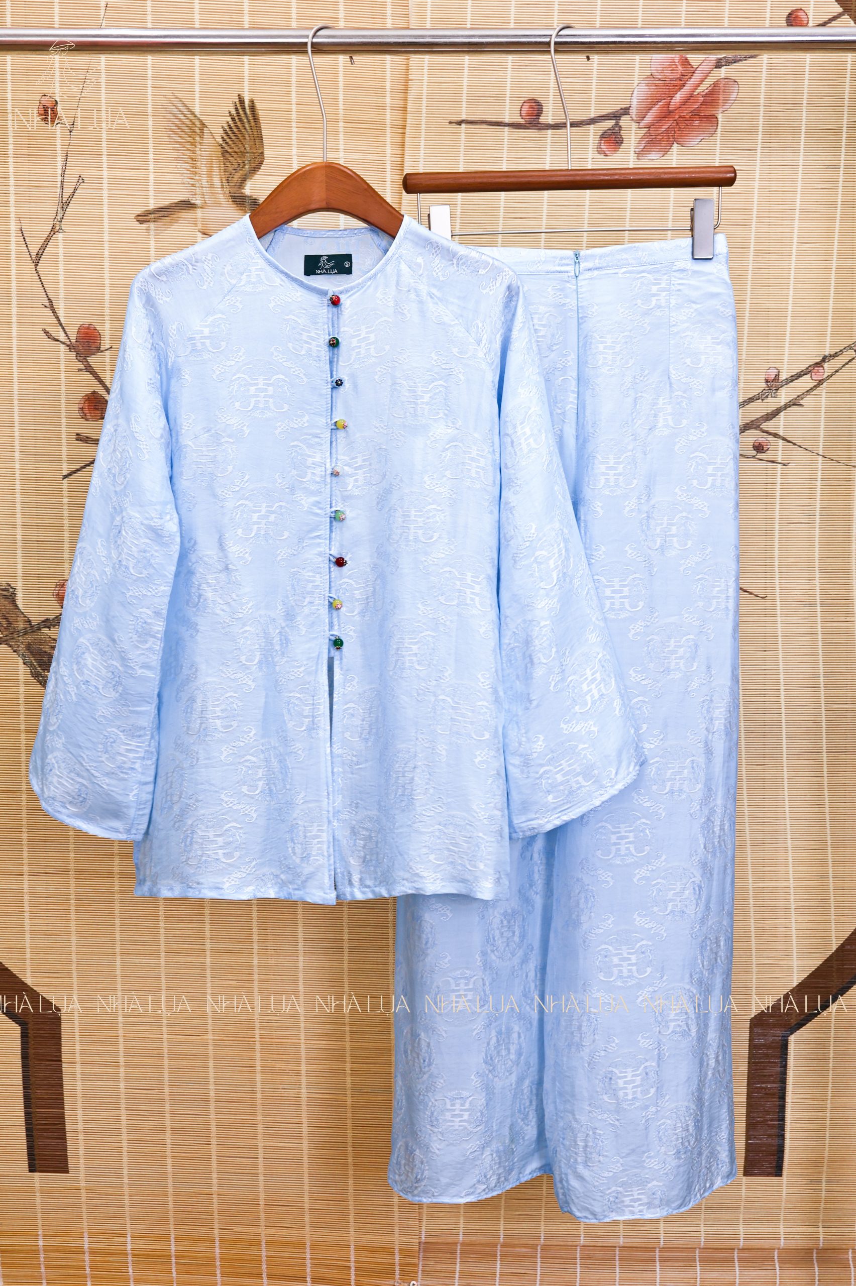 Đây là lựa chọn pháp phục cao cấp lý tưởng cho các buổi lễ chùa, sinh hoạt Phật giáo, tụng kinh hoặc các sự kiện văn hóa truyền thống. Mẫu phục dễ dàng phối cùng chuỗi tràng hạt, khăn choàng nhẹ hoặc túi vải mộc, tạo nên phong thái trang nghiêm và thanh lịch chuẩn Nhà Lụa. Sắc xanh lam giúp người mặc toát lên vẻ nhẹ nhàng, tinh tế và đầy trang nhã.