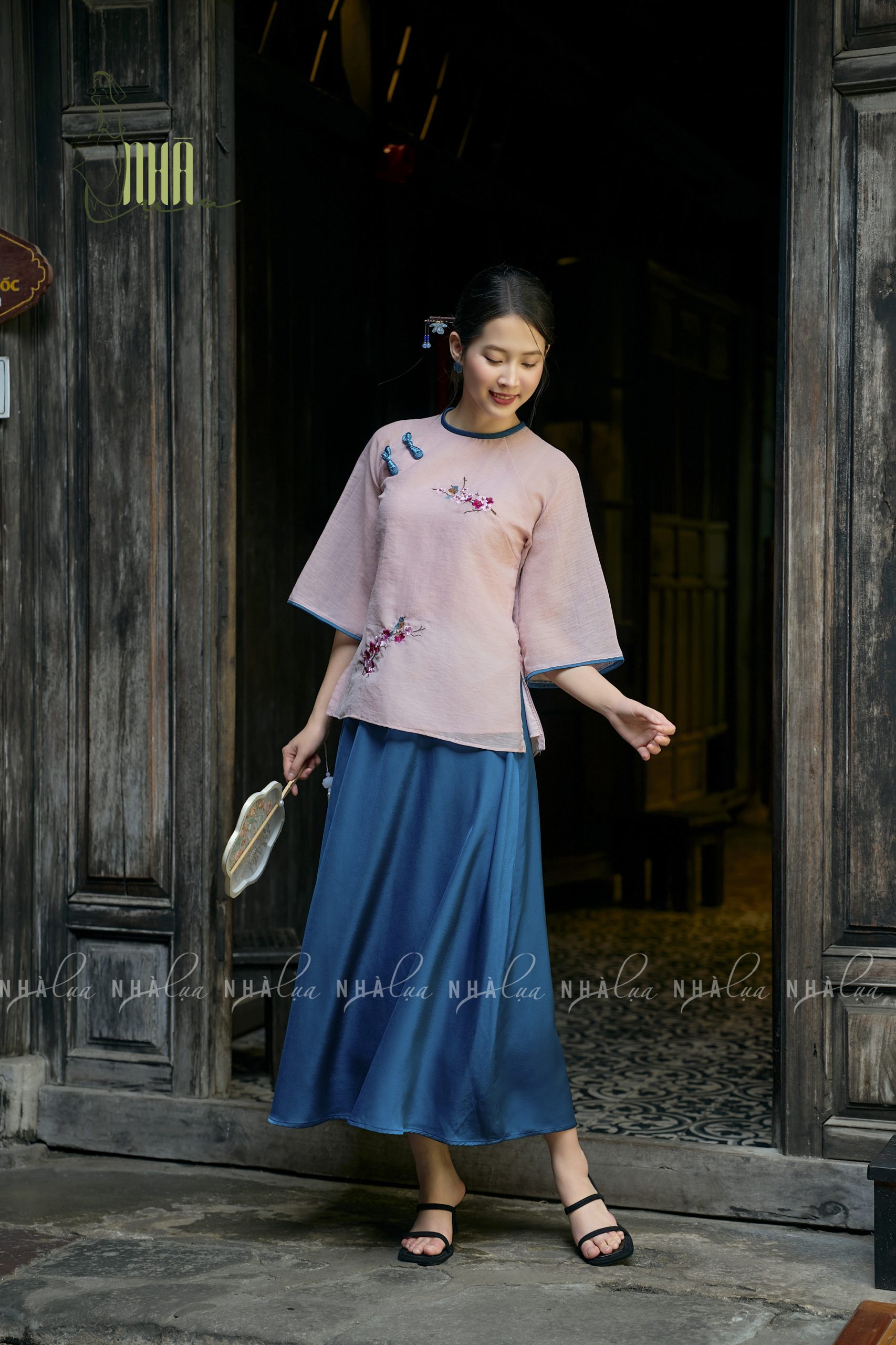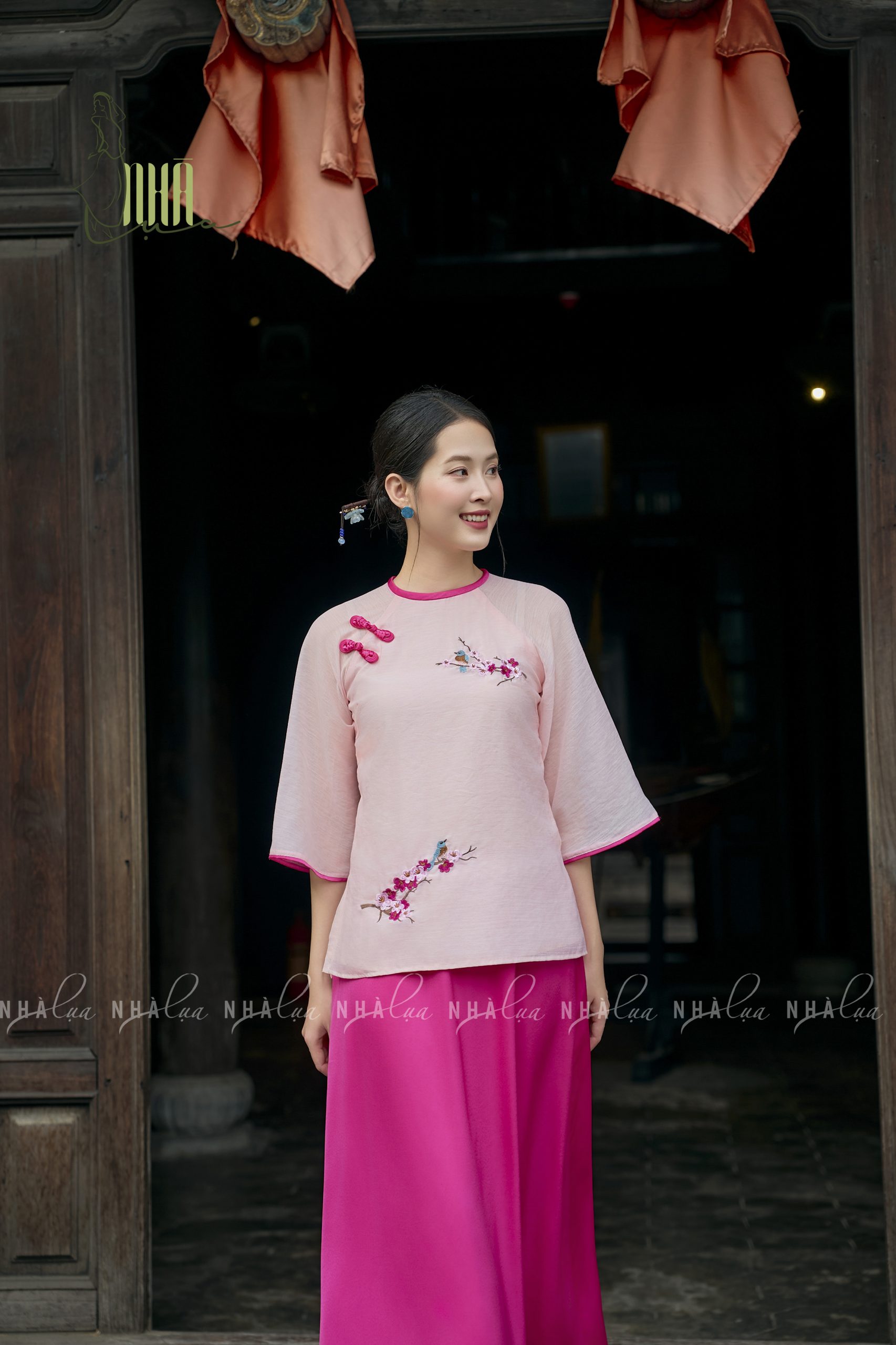 Set Áo Tơ Mềm Thêu Hoa Chim Váy Lụa Sang Trọng Nhà Lụa