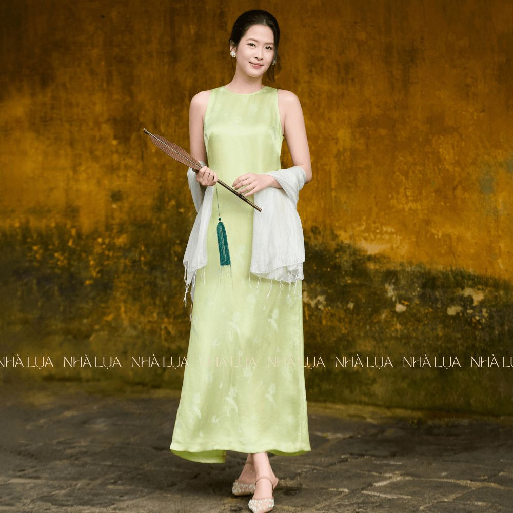 | Dáng váy | Suông dài, cổ tròn, dây kéo ẩn sau lưng, không tay |